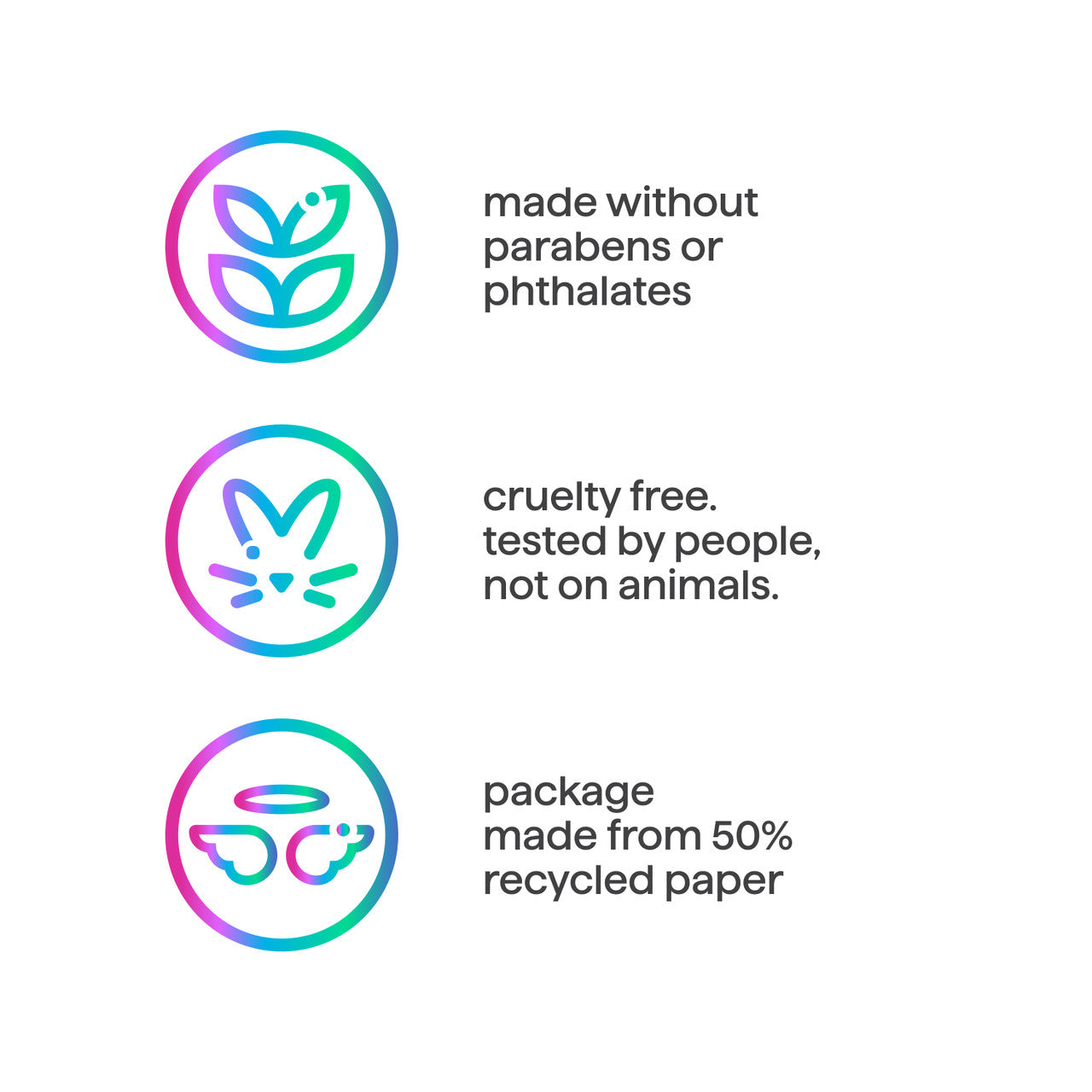 • Cruelty Free. Tested By People, Not On Animals.