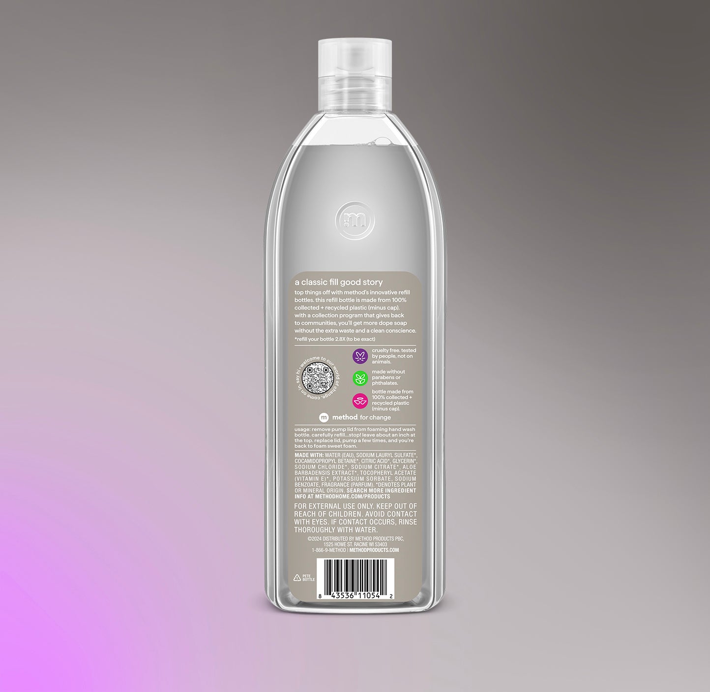 Refill Bottle Is Made From 100% Collected + Recycled Plastic (Minus Cap). Collection Program Gives Back To Communities.