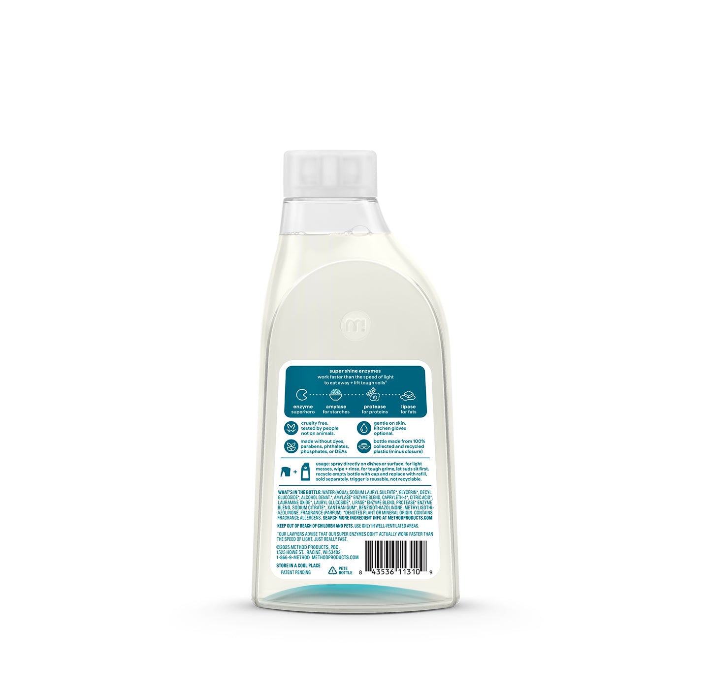 • Designed With The Future In Mind: Bottle Made From 100% Collected + Recycled Coastal Plastic (Minus Trigger). Reuse The Trigger Again And Again With Method Super Shine Dish Spray Refills.