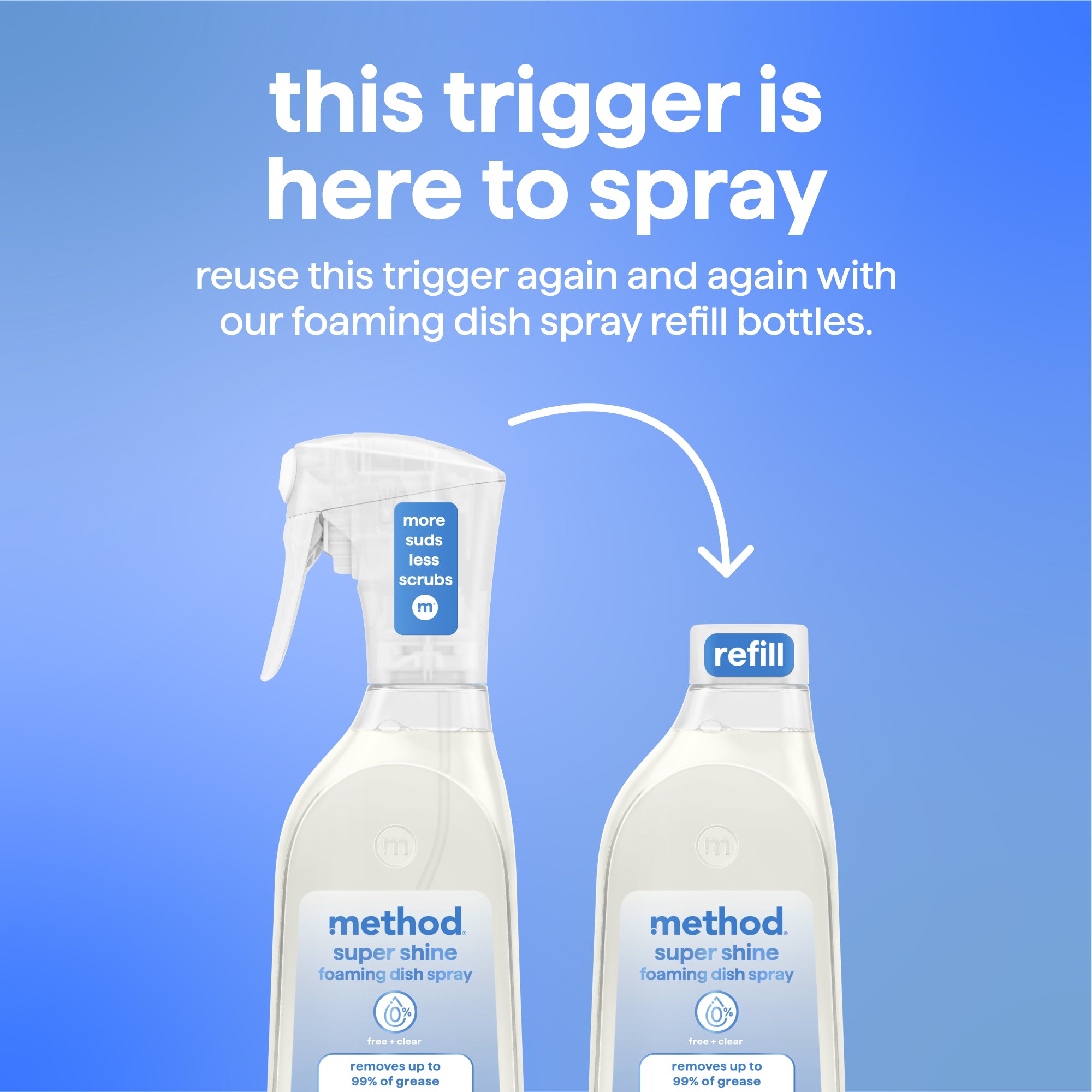 Super Shine Foaming Dish Spray Refill – Free + Clear, 16 Fl Oz