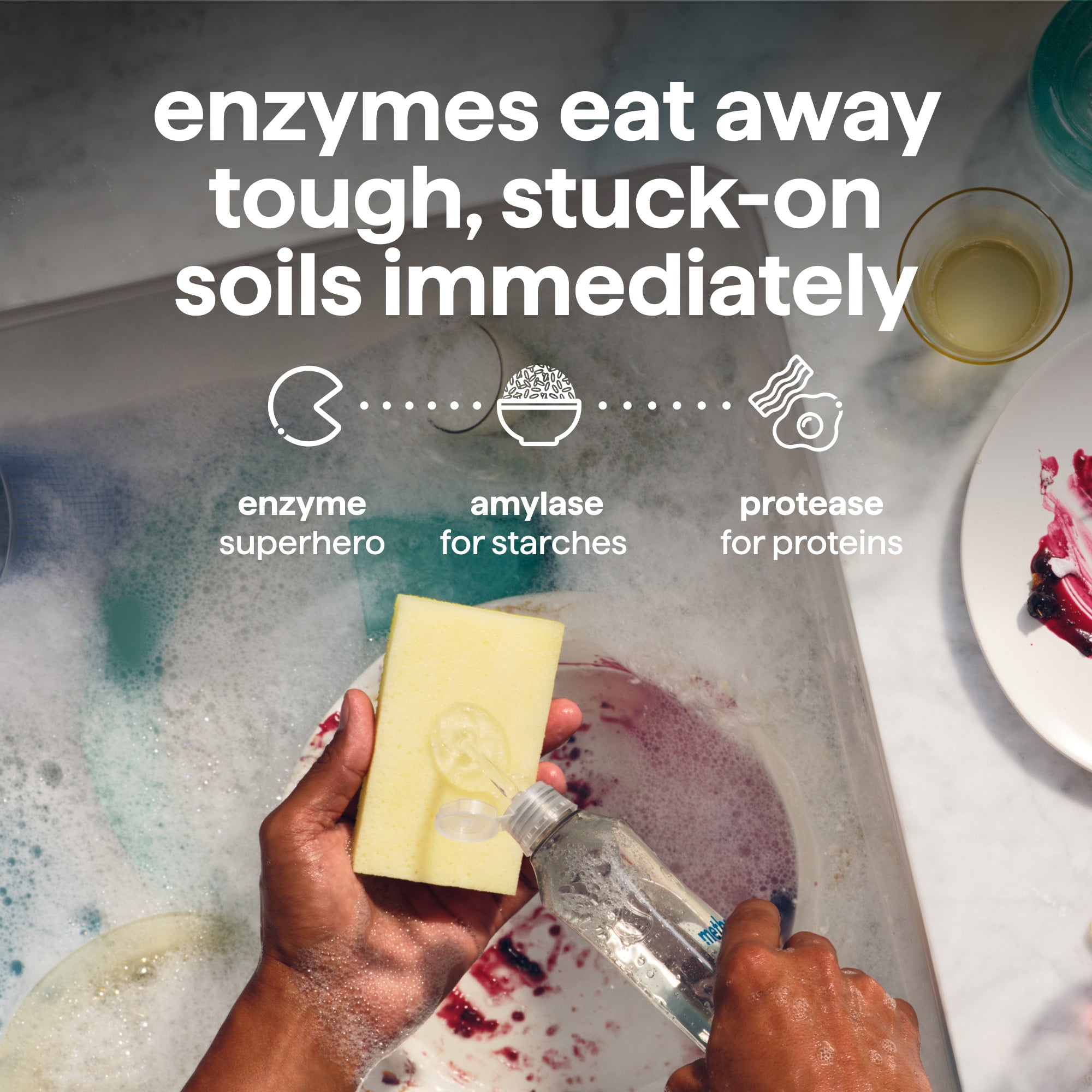 • Effective + Powerful: Powered By 2 Different Enzymes That Immediately Start Eating Away And Lifting Tough Messes. Unique Enzymes Blast Away Specific Foods, Like Amylase For Starches And Protease For Proteins