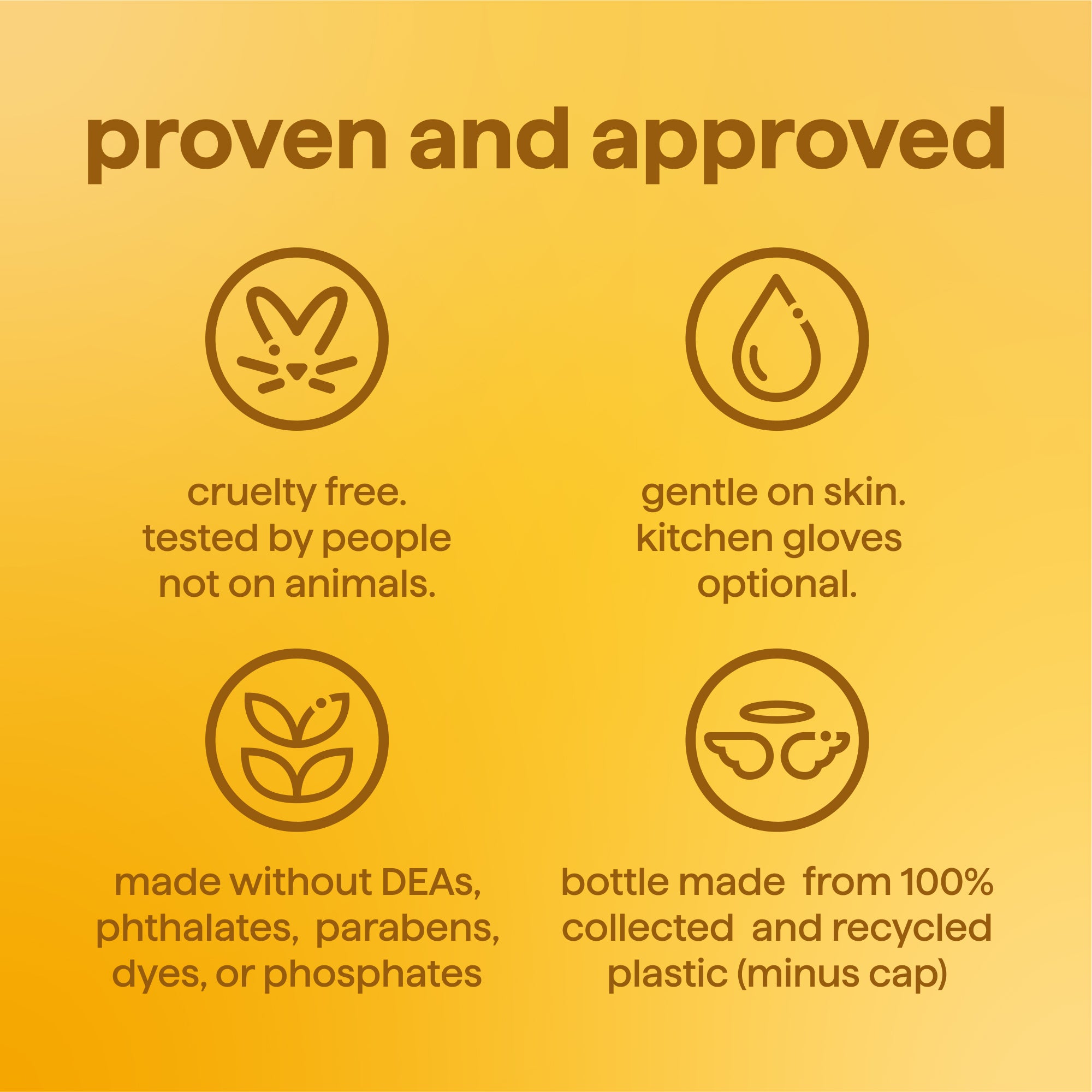 • Strong + Gentle: Gentle On Skin, Kitchen Gloves Optional. Made Without Parabens, Phthalates, Phosphates, Deas Or Dyes. Cruelty Free. Tested By People, Not On Animals.