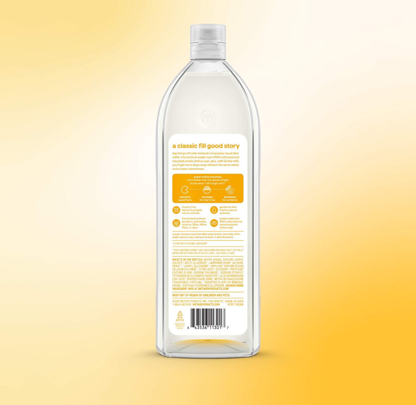 • Powered By Enzymes: Removes Up To 99% Of Grease, With 50% Less Scrubs And 25% More Suds* (*Vs. Original Method Dish Soap)